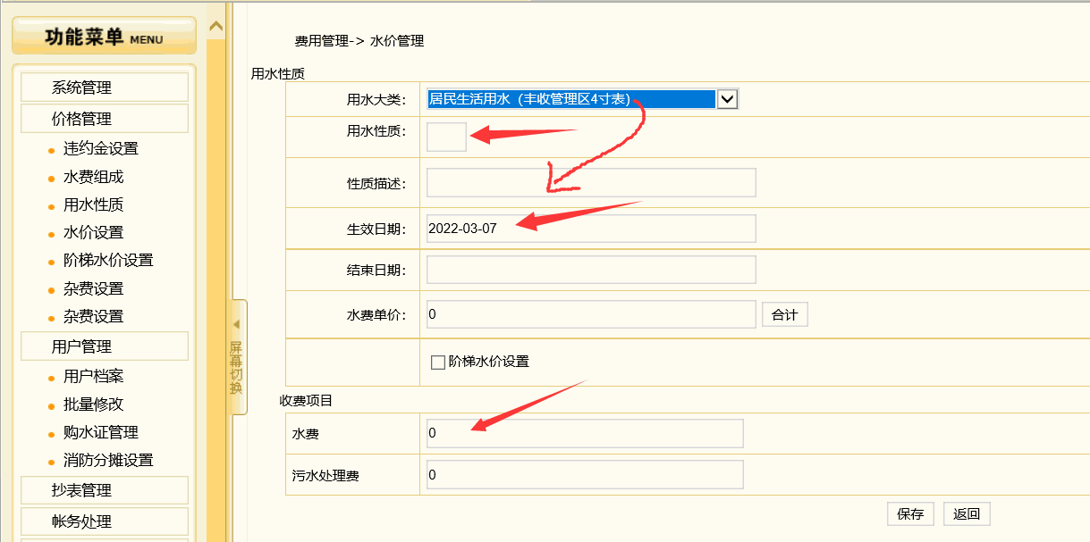 2、价格管理==》水价设置==》添加水价(参照例子:居民生活用水2)