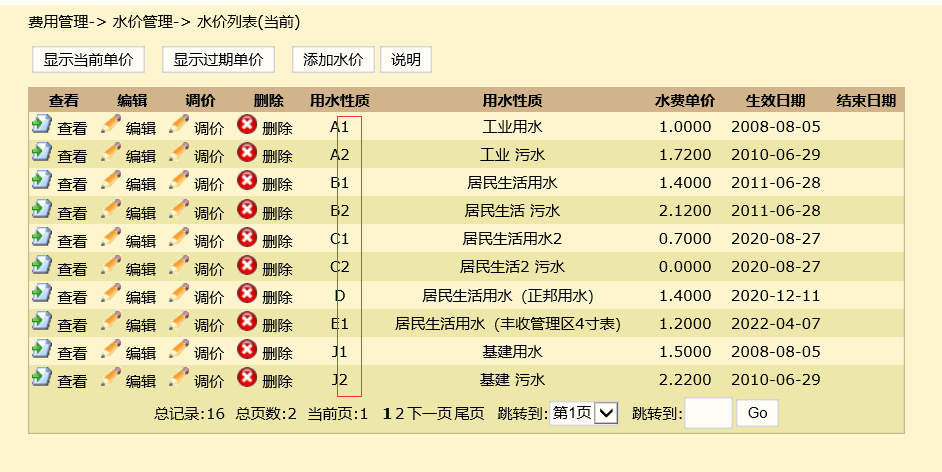 1、 新增用水性质(参照例子:居民生活用水2):价格管理==》用水性质==》增加