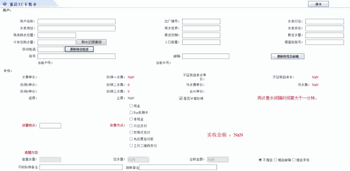 随着自来水使用智能卡水表的种类增多,为方便收费员售水收费操作,故提出把各种类智能卡售水系统集成于一起并融入到营收系统。这样既方便操作,也方便数据统计,避免多个系统来回切换。