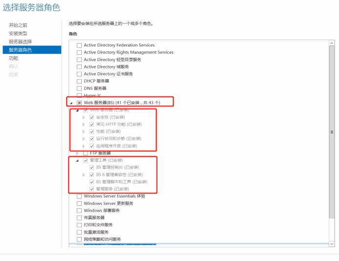 前面全部直接下一步,到服务器角色,找到web服务器(iis)圈住的都勾选(记得要展开讲里面的也勾选),选择下一步。