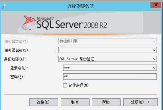 登录名com,密码,不勾选框框内容(此处密码用于收费系统链接数据库)