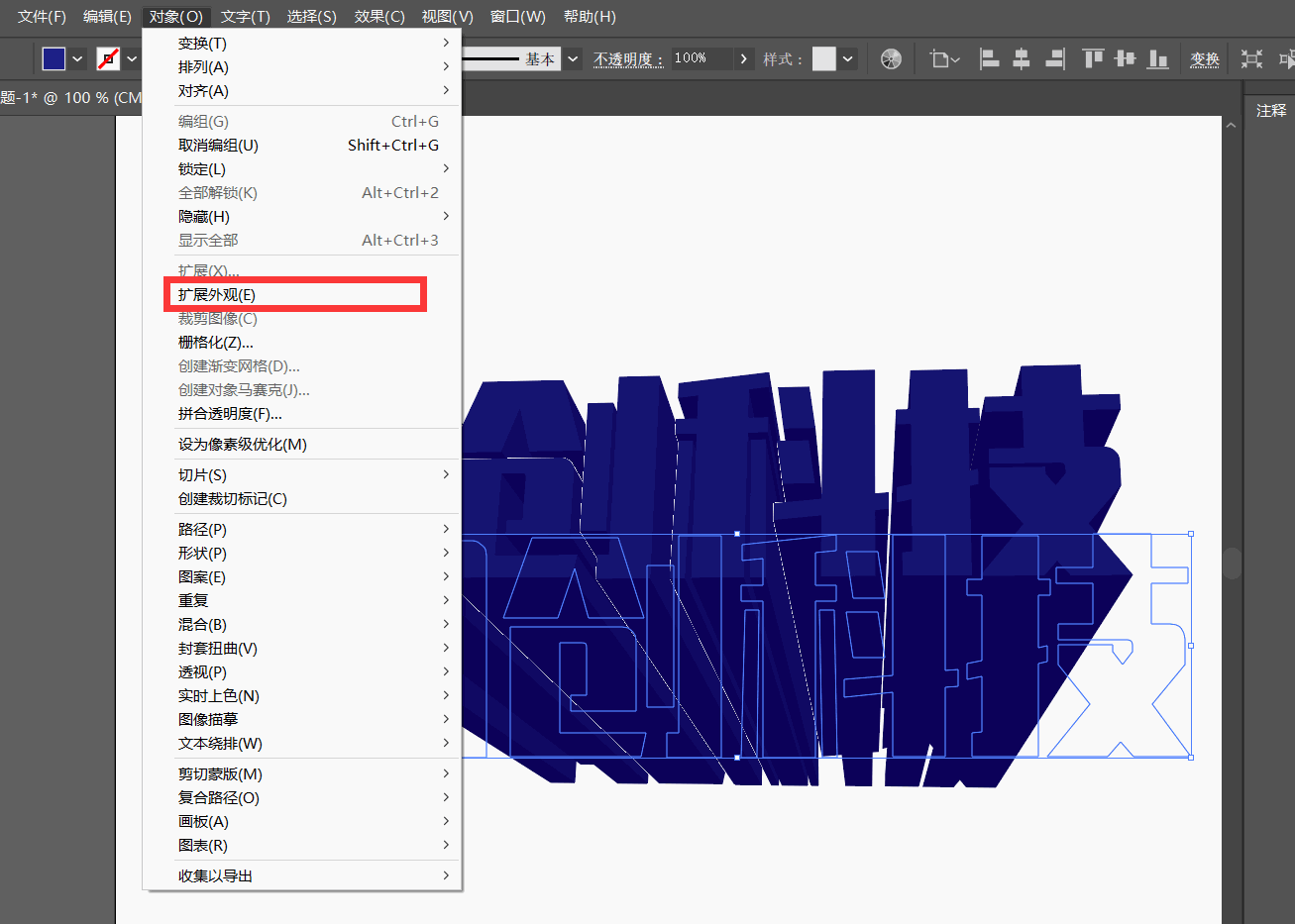 AI 添加 3D 后的效果,需要修改颜色,必须先对图形进行扩展,扩展之后会产生很多不同的图形,我们可以把这些图形进行颜色调整。